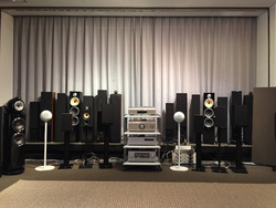 注目は、国内で初めてB&Wの新スピーカー「800D3」シリーズでマルチチャンネルシステムを組んでいる点。天井スピーカーも用意し、最大7.1.4chのオブジェクトオーディオ再生も可能だ。