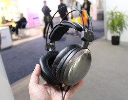 またヘッドホン関連では、ATH-SR5というオンイヤータイプのヘッドホンも出展。価格は149.95ドルで、ホワイト系のカラーとブラウン系のカラーが置かれていた。どちらも軽量で持ちやすく、音もメリハリが感じられるクリアなサウンドだ。