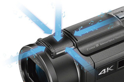 また、手ブレ補正機能とAF性能を進化させた点も特徴だ。従来から搭載している、光学系を浮いているかのように配置する空間光学手ブレ補正に、手ブレ解析によるインテリジェントアクティブモードを組み合わせ。全速力で走ってもぶれない“ハンディカム史上最強の手ブレ補正”だと力強くアピールされている。なお4K撮影時はインテリジェントアクティブモードは適用できない。