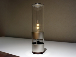 【SPEC】<スピーカー部>●使用ユニット:有機ガラス管型トゥイーター、50mmウーファー ●周波数帯域:60Hz〜40kHz <アンプ部>●実用最大出力:13W(ウーファーのみ) <Bluetooth>●バージョン:Ver.3.0 ●対応プロファイル:A2DP/AVRCP ●対応コーデック:aptX/SBC/AAC/LDAC <その他>●消費電力:最大 約20W(内蔵電池充電中およびイルミネーション輝度最大時)、最小 約0.4W(通常スタンバイ時) ●連続駆動時間:約4時間(Bluetooth接続時) ●外形寸法:最大 約82φ×303Hmm ●質量:約920g(充電池含む)