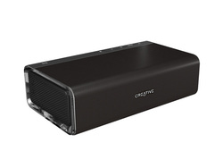Sound Blaster Roar同様、外形寸法が約202W×57H×115Dmm・質量は約1.1kgのコンパクトなボディに、5ドライバーと、それを駆動させるバイアンプを搭載している。また、音の大きさや深さ、広がりをパワーアップさせるという「ROAR」機能や、小音量時に失われる低音を補完する「TeraBass」機能も搭載している。