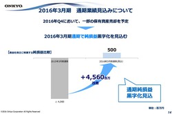 上記のような点を挙げ、オンキヨーは2015年度通期では、営業損益は赤字としたものの純損益は黒字化を見込むとしている。