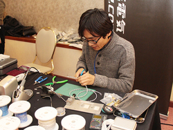 そのほかに今回のイベントでは、同社の“オーディオみじんこ”こと荒川敬氏が、ブース内でケーブルの特注を受け、その場でケーブル製作を実演する特別コーナーも設けていた。