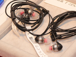 茶楽音人のブースでは、同社のイヤホン「Donguri-楽(RAKU)」をベースに、筐体を小型化した試作機:通称「こどんぐり」を参考出展していた。