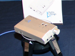 オーディオデザインブースでは、ポータブルながら90%以上のイヤホンをA級駆動できるというヘッドホンアンプ「PEHA-100」の展示・デモが行われた。スイッチング電源による昇圧回路でプラスマイナスの2電源を作り、オペアンプとSEPPバッファーアンプを駆動するDCアンプ構成を採用している。