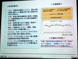 2020年までの見通しについては、4K対応テレビ、カーオーディオなどは各地域で成長傾向が続くだろうと説明。フラットパネルテレビの成長が関連製品市場を活性化する方向にあるという。