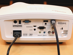 投写方式は、表示解像度1,920×1,080の0.65型DMDパネルを採用する単板DLP方式。輝度は2,600ルーメンで、コントラスト比は20,000対1。投写レンズはF=2.42〜2.97、f=20.7〜31.05mmで、1.5倍のマニュアルズームに対応する。使用ランプは280Wで、ランプ寿命は3,000時間(ブライトモード)/4,000時間(エコモード)/7,000時間(ダイナミックブラックモード)。