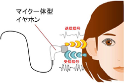 本技術は、装着したマイク一体型イヤホンのスピーカから数100ミリ秒の音響信号を出力し、耳の中で反響した音をマイクで受信。耳の各部のサイズや形状によって変わる音の響き(音響特性)を瞬時(1秒以内)に測定することで個人の識別を行うというもの。