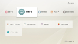 新ホーム画面では、第1階層の大メニューを選ぶと、第2階層の細かいメニューが現れる2階層型の画面を採用。第1階層として「録画する」「視聴する」「削除/編集」「ダビング」「設定/お知らせ」という項目を用意し、例えば「視聴する」を選ぶと、「録画タイトルを視聴」「放送中番組を視聴」「ディスクを視聴」などといったように2階層目のメニューが現れる。