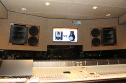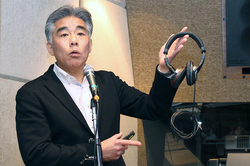 会場では、「HA-MX100-Z」のサウンドを体験するための、スタジオならではの試みも行われた。まず「HA-MX100-Z」を装着し、スタジオモニタースピーカーと比較試聴。「音の迫力などの点ではスピーカーの方が優るが、MX100も解像度や空間表現では負けていない」(秋元氏)。