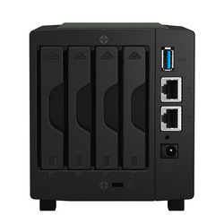また、多数のネットワークプロトコルをサポートし、Windows、Mac、Linuxなど異なるプラットフォームで効率的なファイル共有が行えるようにしている。インターフェースには、本体前面と背面にUSB3.0ポートを1基ずつ備え、背面にフェールオーバーおよびLink Aggregation対応のギガビットイーサネットを2基装備する。
