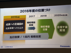 津賀氏は、上述の中期経営計画に基づく2016年度を「成長への足場固めの年」と位置づけた。