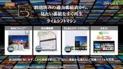 “全録”機能である「タイムシフトマシン」に対応。放送中の番組を冒頭から見られる「始めにジャンプ」、放送済み番組の番組表から選んですぐに再生できる「過去番組表」、多くの番組の中から見たい番組へすぐにたどりつけるよう配慮した「ざんまいスマートアクセス」、インターネット接続を利用した「レグザクラウドサービス TimeOn」での「みるコレ」といった各機能を利用できる。