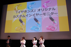 また、オンキヨーブランドのカスタムIEMに、「イヤホンズ」コラボの限定モデルが発売されることも明らかにされた。メンバーのイメージカラーであるイエロー/ブルー/ピンクの3色をラインナップし、筐体には各色のメンバーネームロゴと、イヤホンズのモチーフである音符のマークが刻まれている。