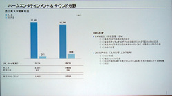 テレビなどが含まれるHE&S分野の売上高は、前年度比6.4%減少し、1兆1,590億円。液晶テレビの高付加価値モデルへのシフトによる製品ミックスの改善及び為替の影響があったものの、液晶テレビの販売台数の減少及び市場縮小にともなう家庭用オーディオ・ビデオの販売台数の減少などにより、分野全体で減収となった。