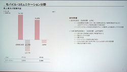 営業損失は614億円で、前年度から1,561億円縮小。この大幅な損失縮小は、主に前年度に営業権の減損1,760億円を計上していたことによるもの。また、主にコストの米ドル建て比率が高いことによる米ドル高の損益に対する悪影響や構造改革費用の増加などがあったが、前述のスマートフォンの販売台数の減少の影響を製品ミックスの改善及び費用削減で補った。なお、為替の悪影響は675億円。
