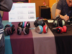 mimimamoでは、ヘッドホンのイヤーパッドに装着するカバー「mimimamo」を展示。今年もキャンペーンを行っており、mimimamoのヘッドホン対応表に載っていないヘッドホンを持って行ってテストすると、そのまま製品がプレゼントされる。