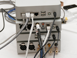 そのほか、USBメモリーにアンプをつんだ製品や、リケーブル製品各種も展示。開発途中で名称も決まっていない製品を多数用意し、精力的な試聴デモを展開している。