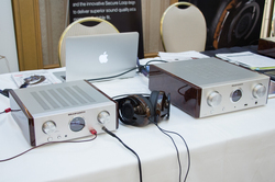 残念ながら当初5月14日としていた発売日はいったん延期となったが、ヘッドホン祭の会場でいち早くそのサウンドを体験することができた。ブースでは、CHORDの旗艦D/Aコンバーター「DAVE」と組み合わせた試聴も行っていた。