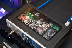 RHAは最上位イヤホン「T20i」のBlackモデルを出展。また、同社初のUSB-DAC内蔵ヘッドホンアンプ「DACAMP」を参考出展。本機はmini 4pin XLR端子によるバランス駆動や、11.2MHz DSDの再生にも対応予定。DACチップはESS製「ES9018MK2」を2基搭載する。発売時期などは未定で、仕様についても今後変更される可能性があるとのことだ。