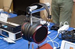 マス工房は前回の「ポタ研」から引き続き、同社ヘッドホンアンプでAKG「K1000」を駆動するデモを実施。「model 394」との組み合わせによるバランス駆動などを行っていた。