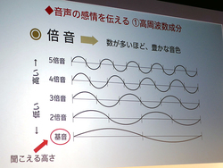 高周波数の倍音成分が多ければ多いほど音色は豊かに感じられる。そこで重野氏は、高周波数を含む音声ほど、相手の感情をよりリアルに感じ取れるのではないかということを解説。それが人と人のより円滑なコミュニケーションに結びつくであろうことを説明した。加藤氏は「コミュニケーションとは感情の伝達であり、テレコミュニケーションはそれを音声だけでやるもの。より高周波までカバーするVoLTE(HD+)は、そのコミュニケーションをより良いものにすると思う」と、アピールした。