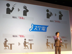2つめは、ジャイロセンサー・加速度センサー・近接センサーを活用した新機能「スグ電」。これは、スマホ本体を一度もタップすることなく、「通話発信」「着信応答」「着信切断」「着信拒否」「消音」の5つの操作が行えるもの。