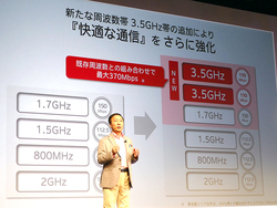 また、Wi-Fiルーター「Wi-Fi STATION HW-01H」は、3.5GHz帯を利用したTDD方式とFDD方式のキャリアアグリケーションにより、受信時最大370Mbpsの高速データ通信に対応する。3.5GHz帯は6月下旬に提供開始予定。こちらは全国主要都市の高トラフィックエリアで集中展開する。