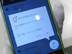 例えば、ユーザーがWi-Fi設定のやり方がわからなくて困っているようなときに、「Wi-Fi設定で困っていませんか?」というヒントが表示され、そこで「はい」を選択してタップすると、Wi-Fi設定の方法を表示してくれる。仕組みとしては、本機能をONにしておくと、ドコモのサーバーにユーザーのスマホ利用ログが送信され、そのログを元にドコモ側からヒントが送信される。本機能には、今回発表されたスマホ/タブレット6機種とも対応している。