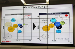 また、スマホやテレビ用液晶などを含むディスプレイデバイスでは、売上高が前年比14.9%減の7,715億円、営業利益が同16.7%減の1,291億円の損失となった。テレビ用大型液晶や中国スマホ向け中小型液晶の販売が減少したという。今後はスマホやテレビ向け液晶などの構成比を減らし、車載向けやサイネージなどの中型事業にシフトしていくという。