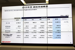 発表会の冒頭、高橋氏は上記の2015年業績について「2期連続で赤字を計上することになったが、鴻海との強固な取り組みによって事業の安定的な継続に務める」と語った。