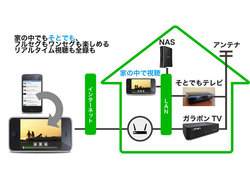 「そとでもテレビ」はリモート視聴対応のフルセグ地デジチューナー。ガラポンTVと連携し、ガラポンTVサービスからフルセグ番組を録画・再生できる。そとでもテレビが受信したフルセグ地デジ番組は、家の中はもちろん、家の外からでもiOSアプリを使って視聴可能。なお録画には別途でNASを用意する必要がある。