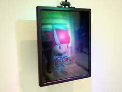 裸眼3Dでは、NHK技研1階ロビーに8Kディスプレイとインテグラル方式によるものと、ホログラフィーによるもののデモコーナーを展開。「4K、8Kで高画素化した次は、テレビに求められるのは奥行きの表現だろう。映像の次の進化は立体テレビだと思っている」(NHK技研所長 黒田徹氏)との考えの下、裸眼3D展示を例年よりも大きく展開している。2030年ごろの実用化システム構築を目指しているという。