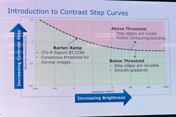 そしてこのレンジのデータを量子化し、映像制作時や再生機器の伝送で一般的である12bitの階調に収めるために、同社は「Perceptual Quantization Curve(パーセプチュアル・クォンタリゼーション・カーブ)」=「PQ」を開発した。これは人間の知覚特性を現すBarten Ramp曲線に沿って量子化することで、知覚できない部分にはビットを付与しないという方式。ちなみにPQは「ST.2084」として標準化されており、Ultra HD Blu-rayにおける標準のHDR収録方式としても制定されている。真野氏は「PQはいちばん効率がよく、人間の目から見て効果的な量子化フォーマット」だと語る。