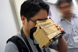 以前のレポートでもお伝えしたとおり、iPhoneを使ったカードボード型のVRゴーグルを使った動画は見たことがあった。今回アダルトフェスタTVがデモで見せていた映像も、基本的にはそれと同じで、主観映像によるものだ。