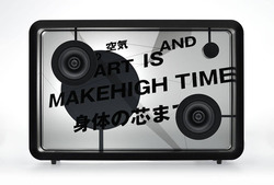 本機は、音楽と同期して歌詞が表示されるスピーカーシステム。筐体に、面発光の透過スクリーンを採用。これにより、再生した楽曲の歌詞をモーショングラフィックとしてスクリーンに表示することができる。