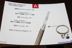 従来機からケーブルも変更された。本機のケーブルは一般的な銅線ではなく、ハイグレードなシルバーメッキ銅ケーブル素材を採用。シルバーメッキ銅線はストレート導体とスパイラル導体をそれぞれ用い、さらにはケーブルの高耐久性を実現する強靱なアラミドファイバーコア、FEPインシュレーターなども備えた。こうした複雑な構造を採用しながら柔軟性も兼ね備え、肌への優しさも考慮したという。