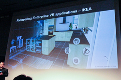 そして、「言葉では説明できないが、HTC Viveで体験できるもの」として複数の例を挙げた。ひとつは手術用のビジョンで、肉眼や従来のモニターでは確認することができなかった脳神経領域や、疾患を解析することが可能になるとした。自動車メーカーのアウディーは、限られたスペースのショールームで車内のデザイン変更などをVRで体験できるようにしてるという。インテリア大手のイケアでは、実際の家具の大きさや仕上げを体感するのにVRを用いている。中国の不動産会社では、遠隔地の物件を体感するのにHTC Viveを用いているとのこと。