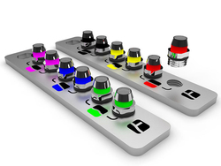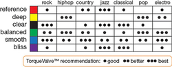 t096zは、ノズル部を交換することでサウンドのカスタマイズが可能となる「Passive Acoustic Valve Technology(PAVT)」を搭載したイヤホン。6種類のノズルが用意され、付属のホルダープレートにてドンシャリからカマボコ型とそれぞれの周波数カーブ図が明記される。