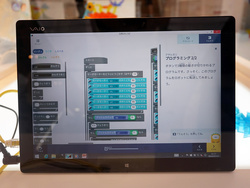 1Fのエントランスやショールームでは、前述のように“α”で美ら海の魚などを撮影できるほか、ウォークマンとヘッドホン“h.ear on”で島唄や沖縄の自然音などのDSD音源を試聴することなどが可能。子供にも理解できるよう配慮したロボット・プログラミング学習キット「KOOV(クーブ)」の展示なども行っている。