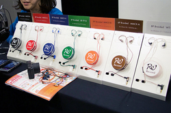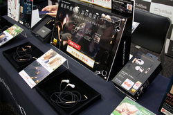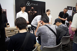 finalは、昨日15日に発表されたイヤホン新モデル“Fシリーズ”(関連ニュース)を展示。筐体が約2g、下位モデルF3100においてはケーブル含め全体で10gと超軽量のモデルだ。よりダイレクトな音楽再生を目指し、イヤーチップの取付位置や耳への装着位置などが変更できる仕様となっている。ブースには同シリーズの試聴を待つ来場者の列ができていた。