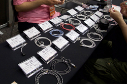 他にも、Re:cordブランドの豊富なコネクタータイプとカラーバリエーションを取り揃えるリケーブル「Palette 8シリーズ(関連ニュース)や、店舗限定の手作りで製作されるという交換ケーブルも数多く展示している。