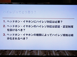 本編では、ヘッドホン/イヤホン製品にハイレゾロゴを付与することに関して、それぞれの立場から様々な意見が出ていた。