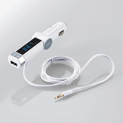 車のFMチューナーに電波を飛ばすことで、スマートフォンやポータブルオーディオプレーヤーの音楽をカーステレオで楽しめるFMトランスミッター。