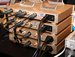以前にもイベント等で披露されていたシステムで、ラインナップは、プリアンプ「CMA800P Golden」、DAコンバーター「CAS192D Golden」、モノラルヘッドホンアンプ「CMA800R Golden」の3機種。