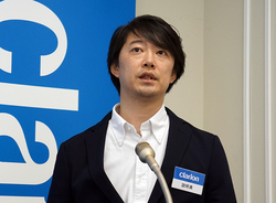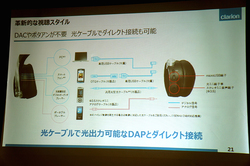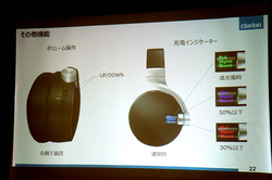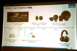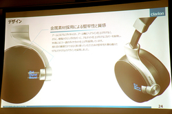 クラリオン(株)は、「ポータブルオーディオ研究会2016夏」会場において、フルデジタルサウンドヘッドホン「ZH700FF」の発表会を開催。同社マーケティング部の井上陽介氏が製品の紹介を行った。