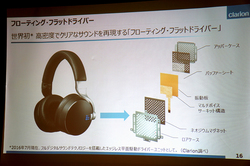 本機は10月に発売される密閉型ヘッドホンで、価格はオープンだが14万円前後での販売が予想される。フルデジタルサウンドシステムを搭載しただけでなく、ドライバー構造として世界初の「フローティングフラットドライバー」を採用したことも大きな特徴だ。