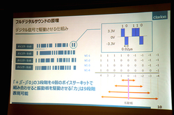「たった9段階で大丈夫かと思われるかもしれないが、しっかりと滑らかな音を再現できる。それは1回の振動が0.02μsという超高速で行われるためだ。逆に言うと、このハイスピード処理が可能なLSIができたため、フルデジタルサウンドシステムを実用化できた」と井上氏は説明する。