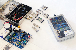 Sub minitsでは、初出展となるUchidate Worksの真空管ポータブルヘッドホンアンプ3機種や、1980年製のオイルコンなどヴィンテージ部品を搭載する“お弁当箱ポタアン”「OLD TIME」などを展示。様々な自作キットの試聴デモを実施しており、多くの人が立ち寄っていた。