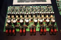 新アンプでは、これまでに蓄積された設計ノウハウを活かし、基板のパターニングとレイアウトを徹底的に見直し。信号経路をさらに短縮・最適化することで、入力から出力までストレートな信号伝送ができ、一層のノイズ抑制を可能にしたという。特にLX901は、ローパスフィルターの大型化やカスタムコンデンサーの増加(6個→8個)も行うことで、11ch同時出力880Wというハイパワー駆動を実現するという。